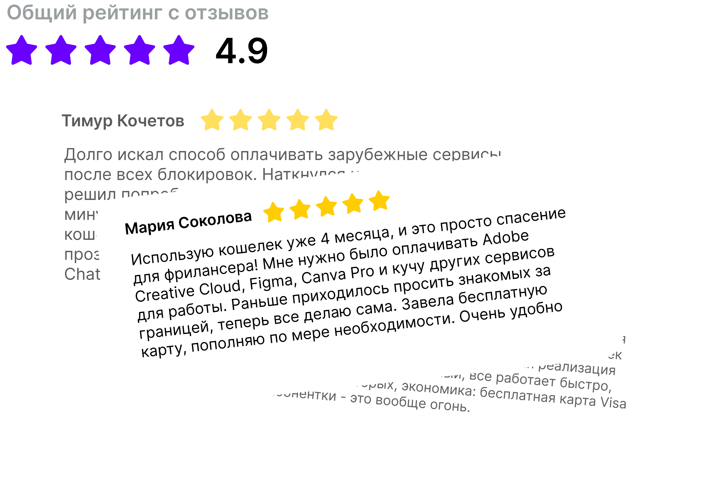 Оплачивайте подписки, сервисы, покупки в зарубежных интернет-магазинах. Привязывайте карты к любым платформам без ограничений и блокировок.